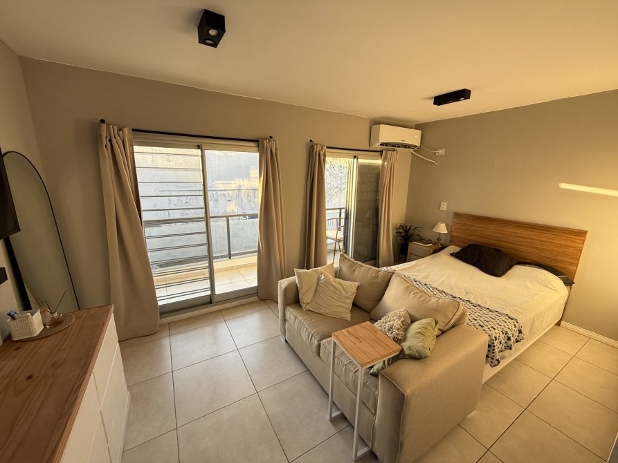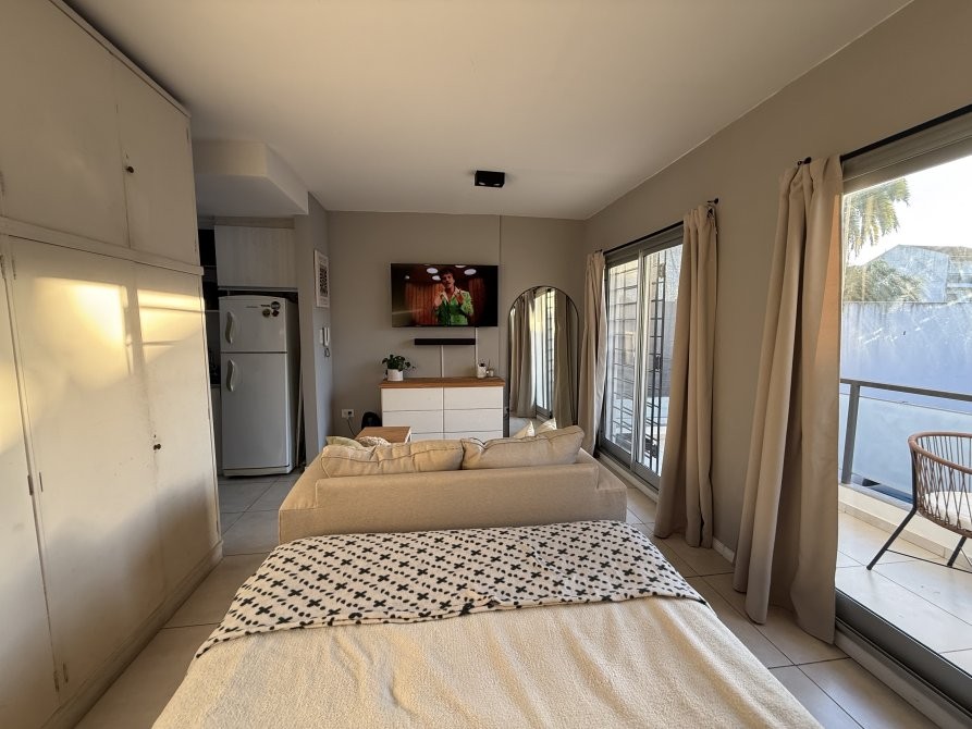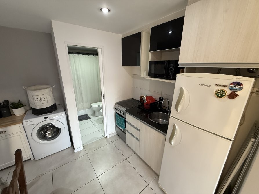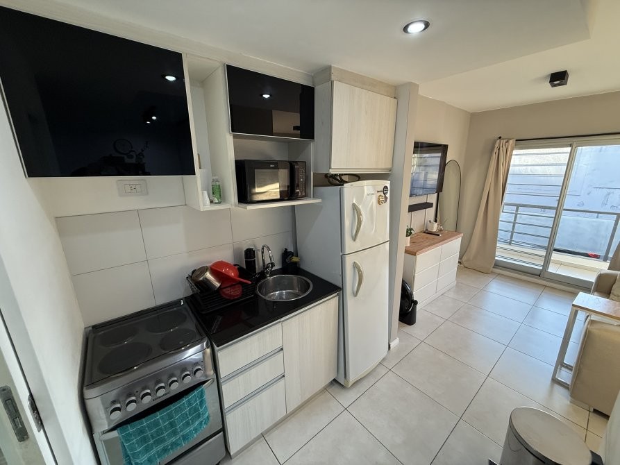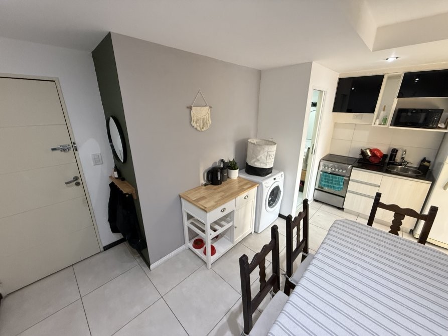 Consta de un ambiente único totalmente electrico con pisos de porcelanato, cocina integrada con revestimiento cerámico, artefacto de cocina eléctrico, amoblamiento melamínico, mesa de marmol con bacha de acero inoxidable y grifería monocomando, baño completo con bañera y balcón. Espacio para conexión de lavarropas.