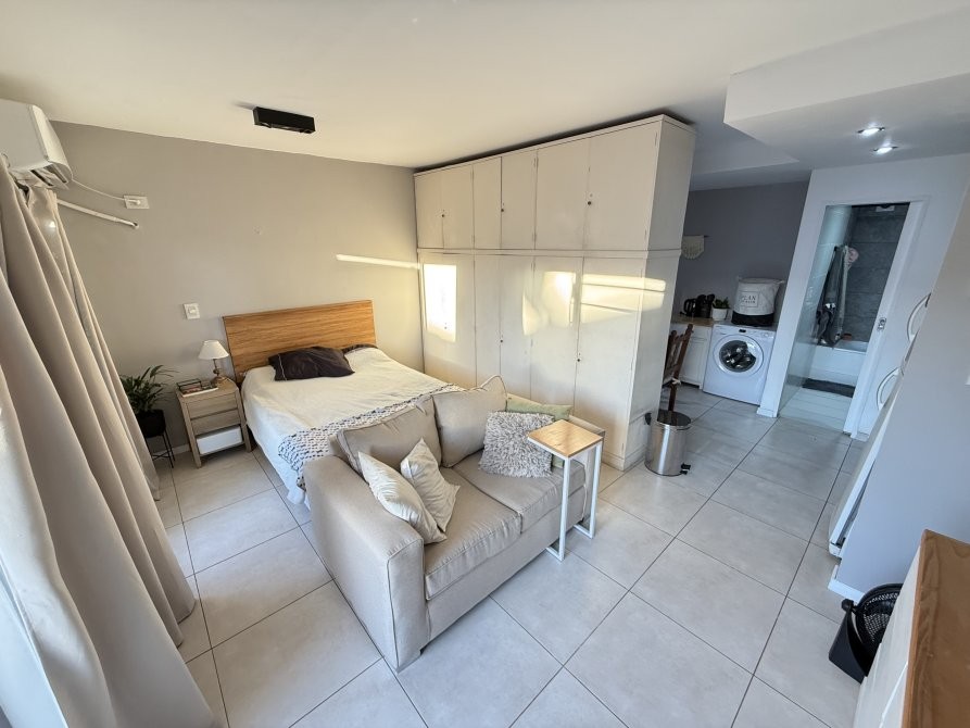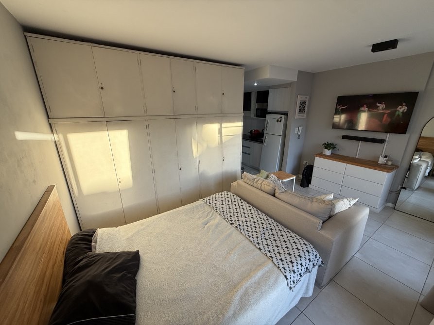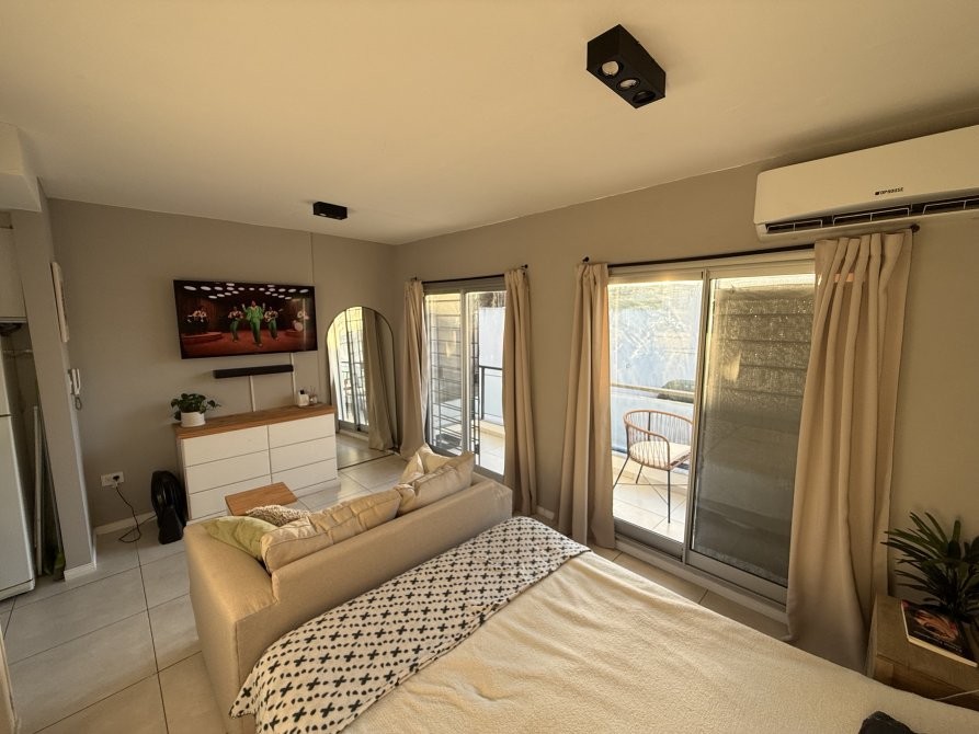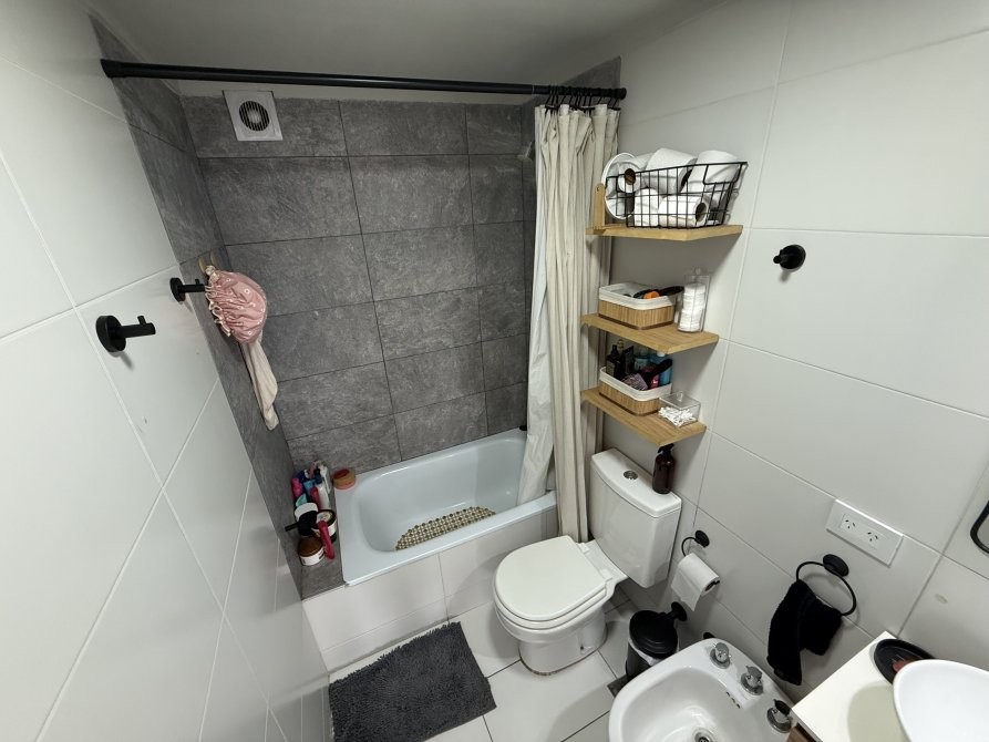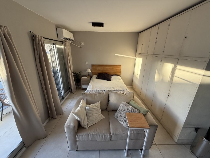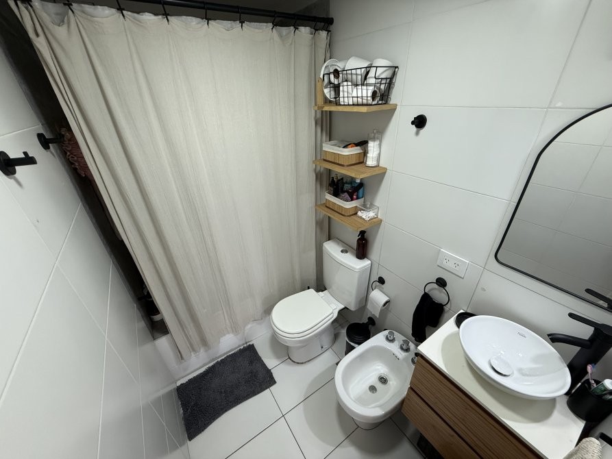 Consta de un ambiente único totalmente electrico con pisos de porcelanato, cocina integrada con revestimiento cerámico, artefacto de cocina eléctrico, amoblamiento melamínico, mesa de marmol con bacha de acero inoxidable y grifería monocomando, baño completo con bañera y balcón. Espacio para conexión de lavarropas.