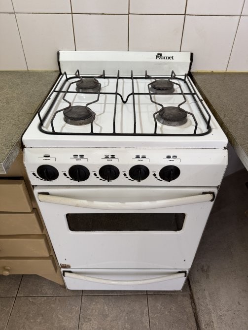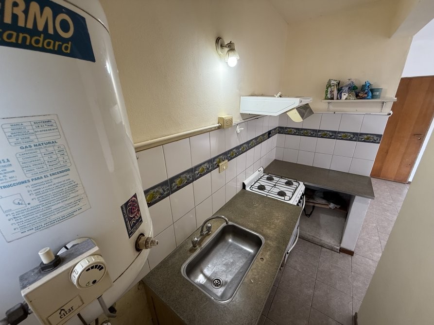 Cocina separada con artefacto cocina, spar, mueble bajo mesada y conexión para lavarropas.