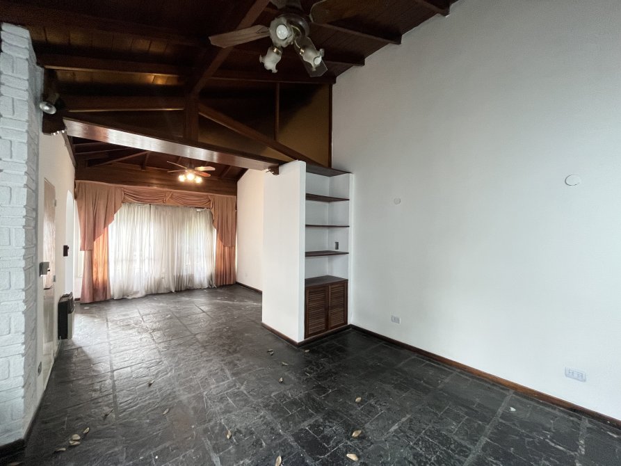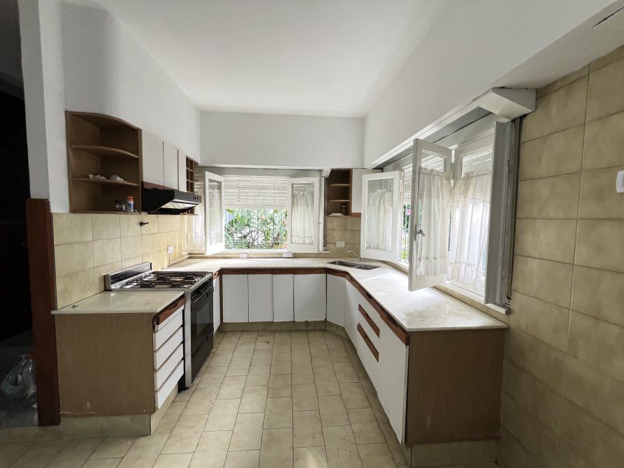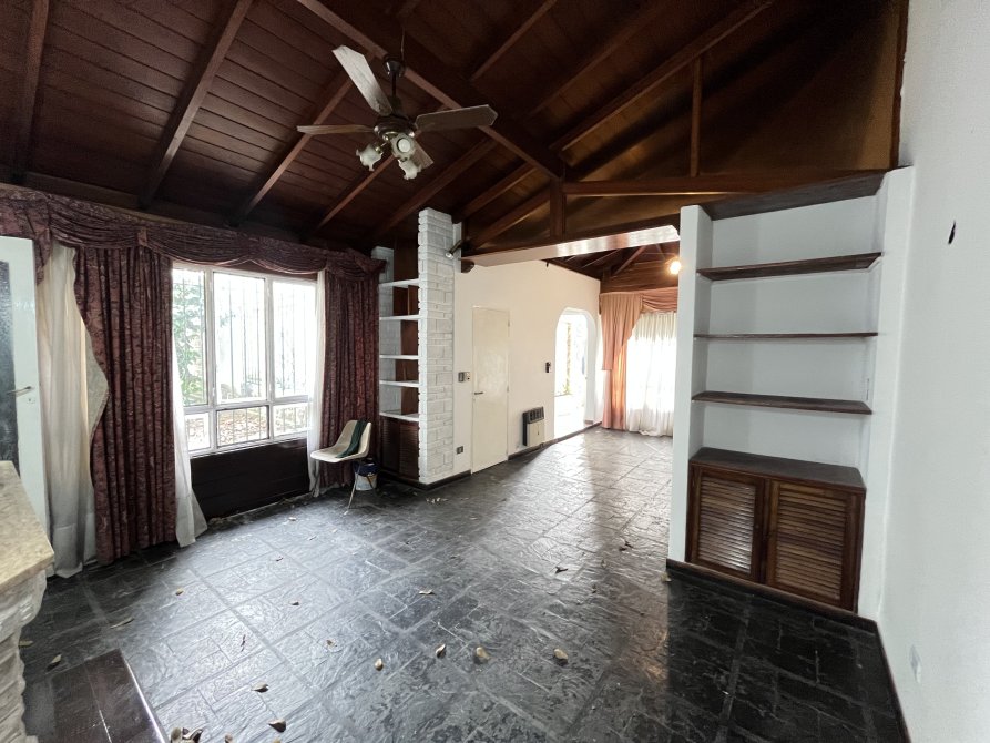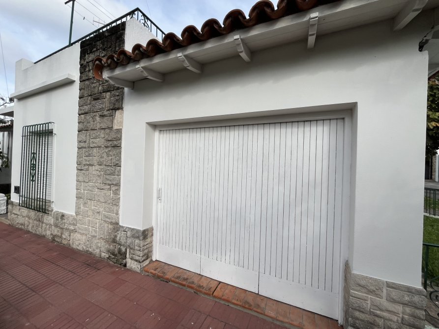 La propiedad cuenta con doble cochera cubierta con portón corredizo y una tercera cochera descubierta al frente.