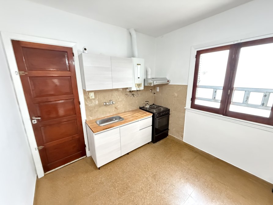 Amplia cocina comedor equipada con artefacto de cocina, spar, amoblamiento bajo mesada, alacena y caldera.